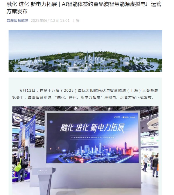 每经AI快讯,6月12日,在第十八届(2025)国际太阳能光伏与智慧能源(上海)大会暨展览会上,晶澳智慧能源 “融化、进化、新电力拓展”虚拟电厂运营方案正式发布。会中,晶澳智慧能源BG总裁施俊与蚂蚁数科代表完成AI智能体合作签约,双方将以开放共赢的理念共建能源数字生态。