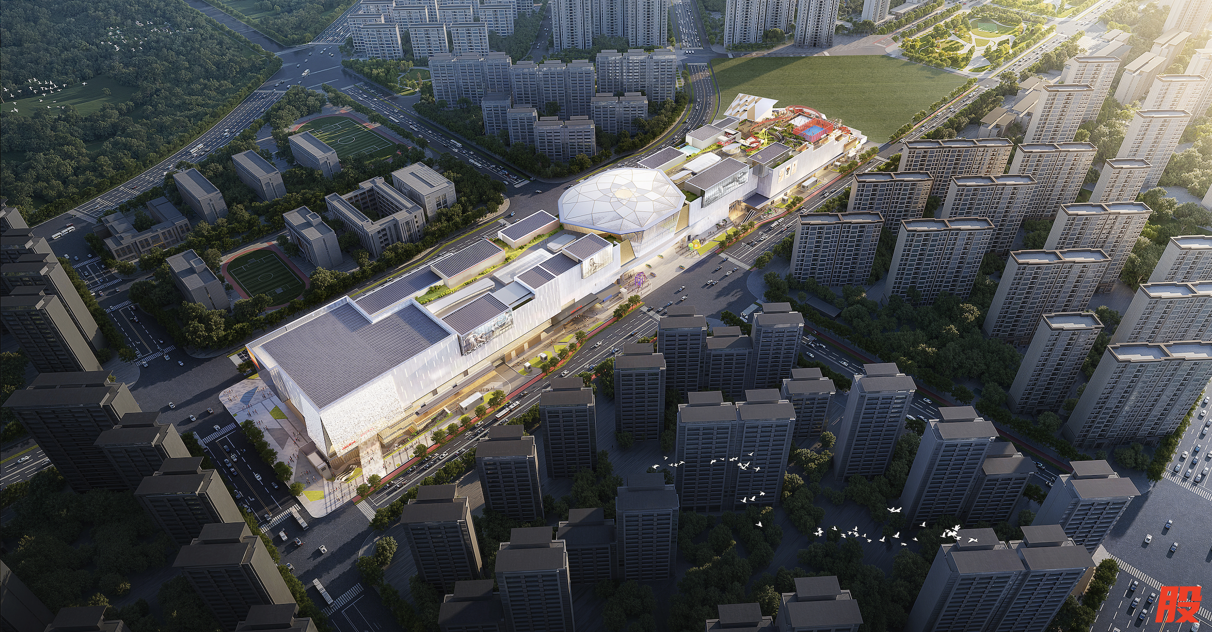 这是中海新城“朝阳三子”中朝阳ONE北侧的金融商服用地。已确打造为北京首座环宇城,全业态一站式购物中心,总建面超21万㎡,其中商业建面近14万㎡。